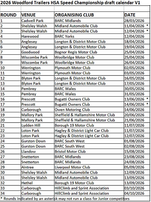 We are pleased to publish version 1 of the Draft 2026 Woodford Trailers HSA Speed championship calendar: