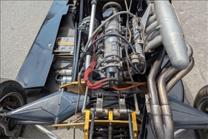 1098cc engine with an Arnot supercharger. 4-speed gearbox. Original hydraulic brakes modified to provide front/rear balance. Alloy wheel hubs and rims. Built for lightness (400kg).