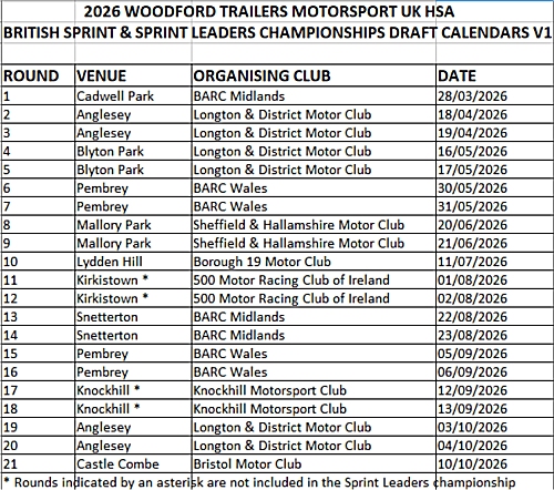 We are pleased to publish version 1 of the Draft 2026 Woodford Trailers Motorsport UK HSA British Sprint & Sprint Leaders championship calendars:
